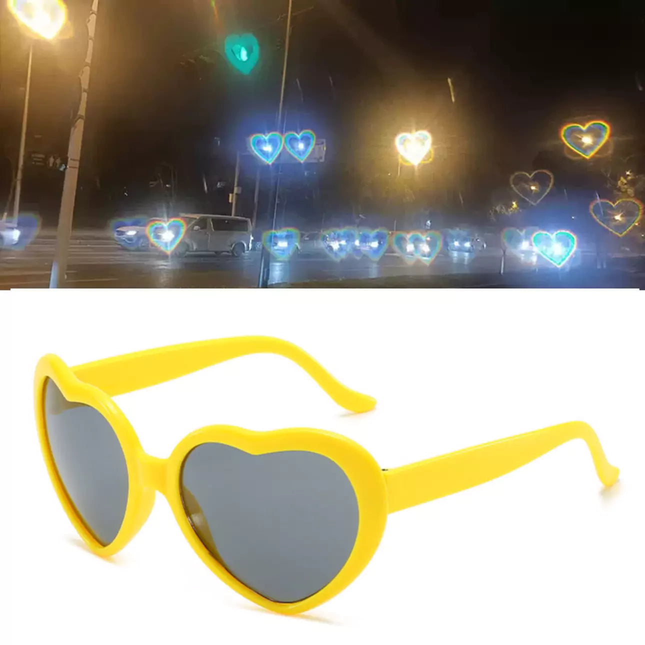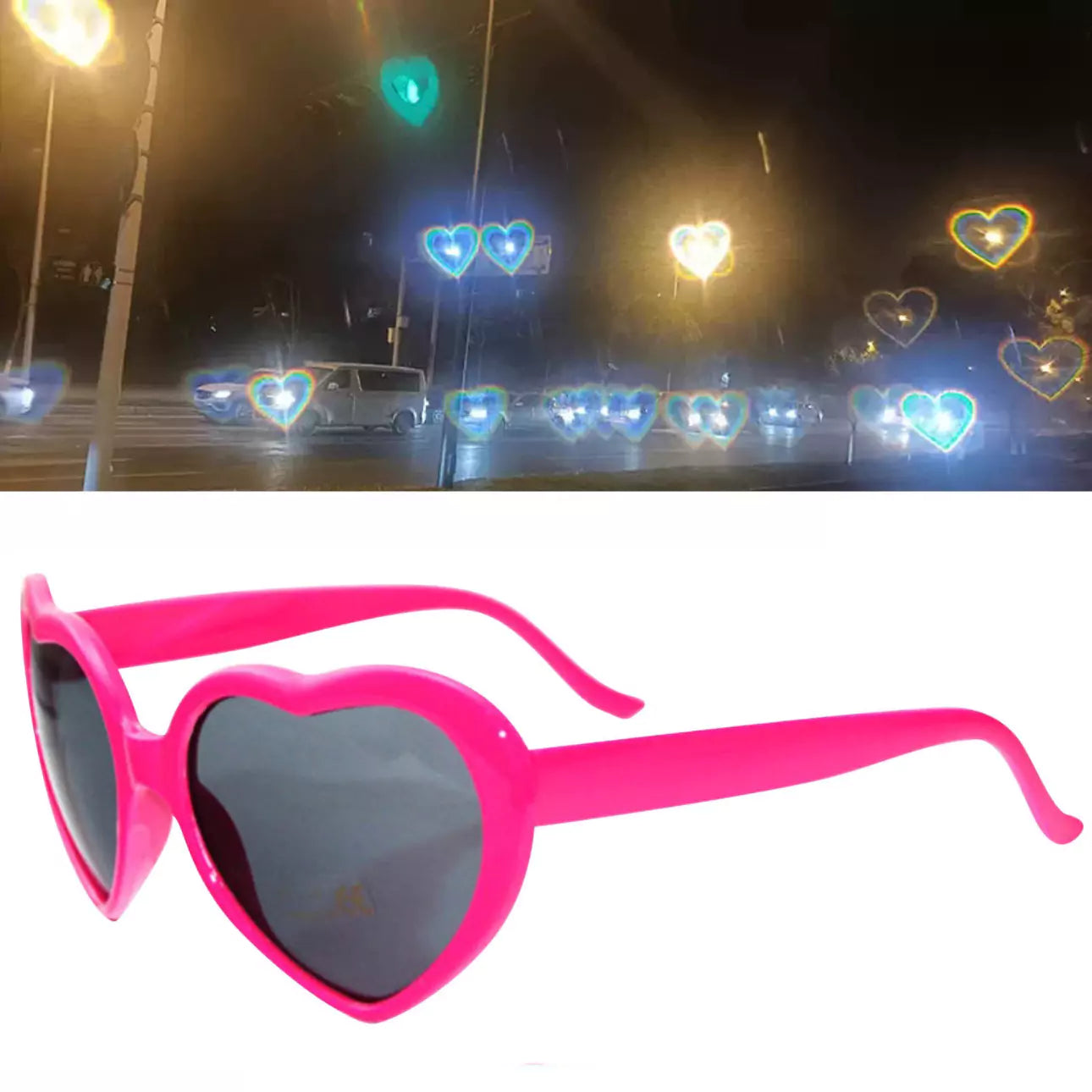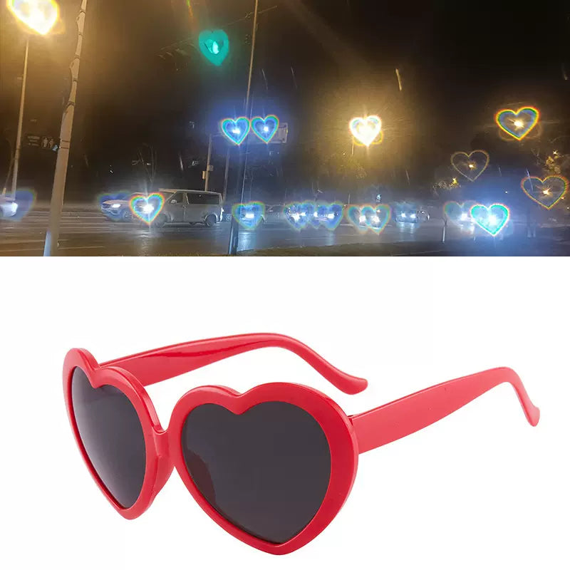 Add a touch of romance to your view. Turn ordinary lights into heart-shaped love with these special effects sunglasses!